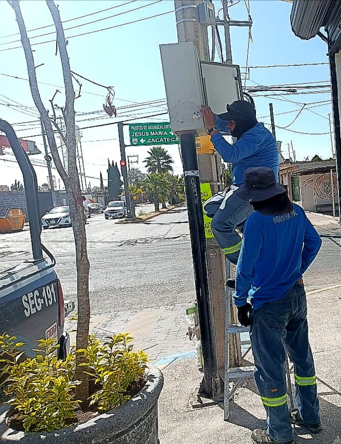 Con el objetivo de ofrecer calles más seguras y mejorar la movilidad para peatones y conductores, el Gobierno Municipal de Jesús María, trabaja de manera permanente en el mantenimiento y la reparación de los 33 semáforos que regulan el tránsito de las principales calles de la ciudad.