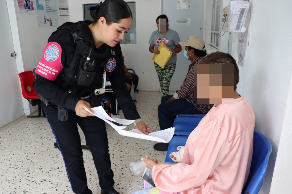 Personal de la Policía Rosa de la Secretaría de Seguridad Pública del Estado, por instrucciones del titular de la institución Manuel Alonso García, brindan apoyo a la mujer que resultó lesionada tras ser atacada por su pareja sentimental, a fin de que reciba atención médica por las graves quemaduras que presenta, además de que recibe apoyo por parte del DIF Estatal para su completar el tratamiento médico.
