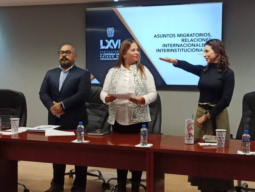 En sesión ordinaria, la Comisión de Asuntos Migratorios de la LXVI Legislatura del Congreso de Aguascalientes, que preside la diputada Ma. Guadalupe Mendoza Medrano y en esta ocasión integraron el diputado José Trinidad Romo Marín y la legisladora Alejandra Peña Curiel, quien rindió protesta como vocal de este organismo; se avaló una iniciativa de reforma al artículo 6° de la Ley Orgánica del Instituto Aguascalentense de las Personas Migrantes.