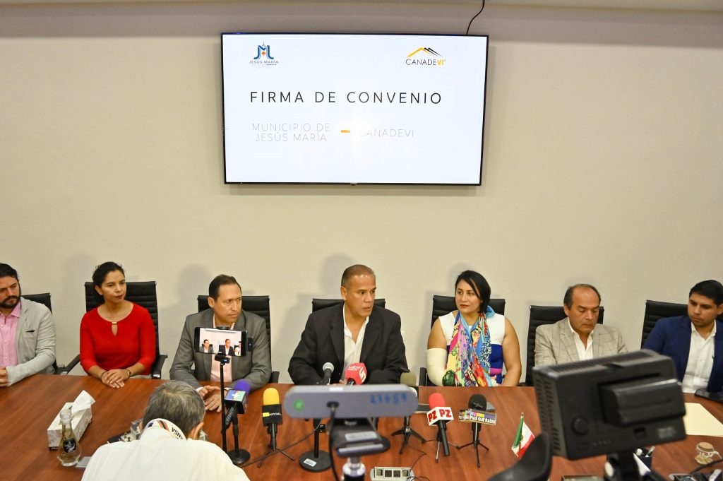 Se llevó a cabo la firma de convenio entre el Municipio de Jesús María y la Cámara Nacional de la Industria de Desarrollo y Promoción de Vivienda (CANADEVI), con la finalidad de continuar trabajando de la mano, entre los proyectos conjuntos que se tienen previstos, destaca la construcción de vivienda social de calidad y a costos accesibles, lo que permitirá mejorar la calidad de vida de las familias del municipio. De esta manera el municipio se consolida como el más atractivo para la inversión y el desarrollo inmobiliario.