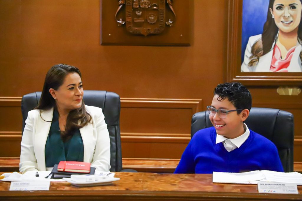 Luis Enrique Gutiérrez Reynoso, director del Instituto de Educación del Estado de Aguascalientes (IEA), reconoció a los ganadores del Encuentro Nacional de Deletreo, a Ian Arias Guerrero, de la Escuela Primaria “Presidentes de México”, ganador de la medalla de oro en la categoría niños, y Sofía Valentina Martínez Galván, de la Escuela Primaria “Margarita Maza de Juárez”, quien obtuvo el bronce en la categoría niñas.